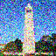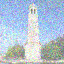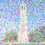 \[x_t = \sqrt{\bar\alpha_t} x_0 + \sqrt{1 - \bar\alpha_t} \epsilon, \quad \epsilon \sim \mathcal{N}(0, \mathbf{I})\]Here are the results of the forward process on the Campanile image at different noise levels ($t \in {250, 500, 750}$):