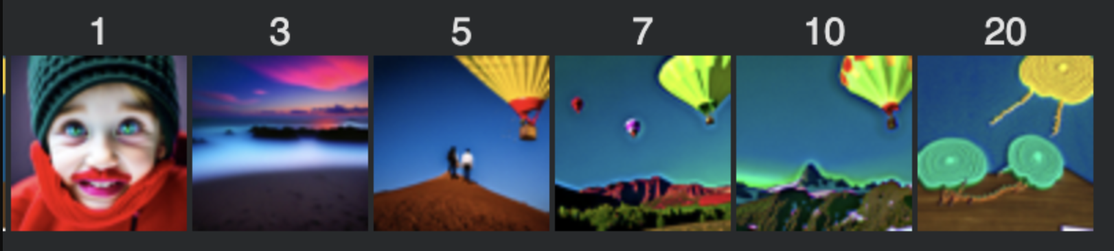 I generated images for three different prompts using 20 inference steps. The random seed used for all parts of this project is 100.