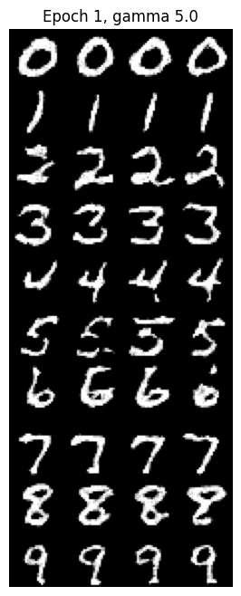 Here, I trained the model to denoise pure noise (i.e., mapping $\mathcal{N}(0, I)$ to MNIST digits).